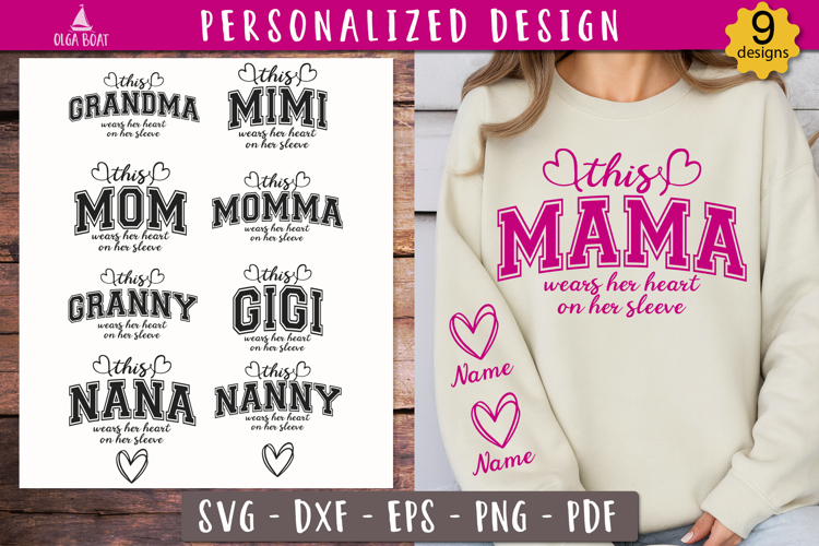 Birthday Gift Design Black And White Clipart Graphic Designs Family Custom Kids Names Mama Life Mothers Day Quote Design Cute Mother Sleeve Name Shirt Sweatshirt Clipart This Grandma Wears Her Heart On Her Sleeve Svg Nana Grandma Gigi Granny Svg Sleeve Heart Personalized Sentimental Grandparent Gift Family Love Text Kids Grandkid Name Mama Mom Nana Mimi Motherhood Svg