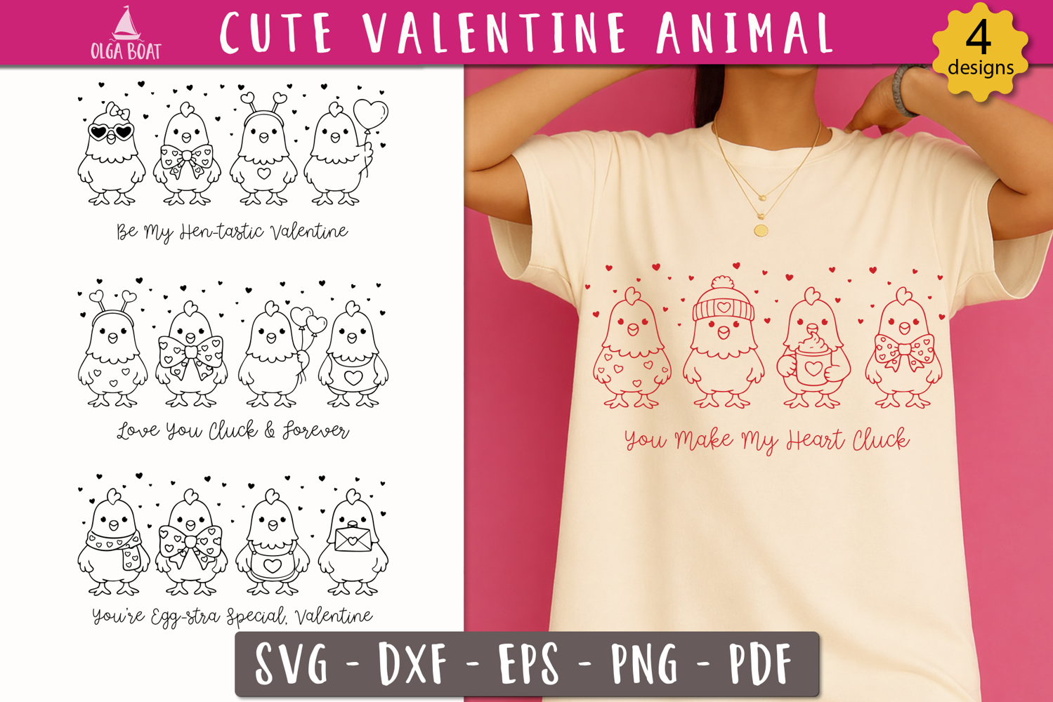 Valentine Chicken illustrations is perfect for Valentine’s Day cutting, prints, decor, cards, wall art, etc..