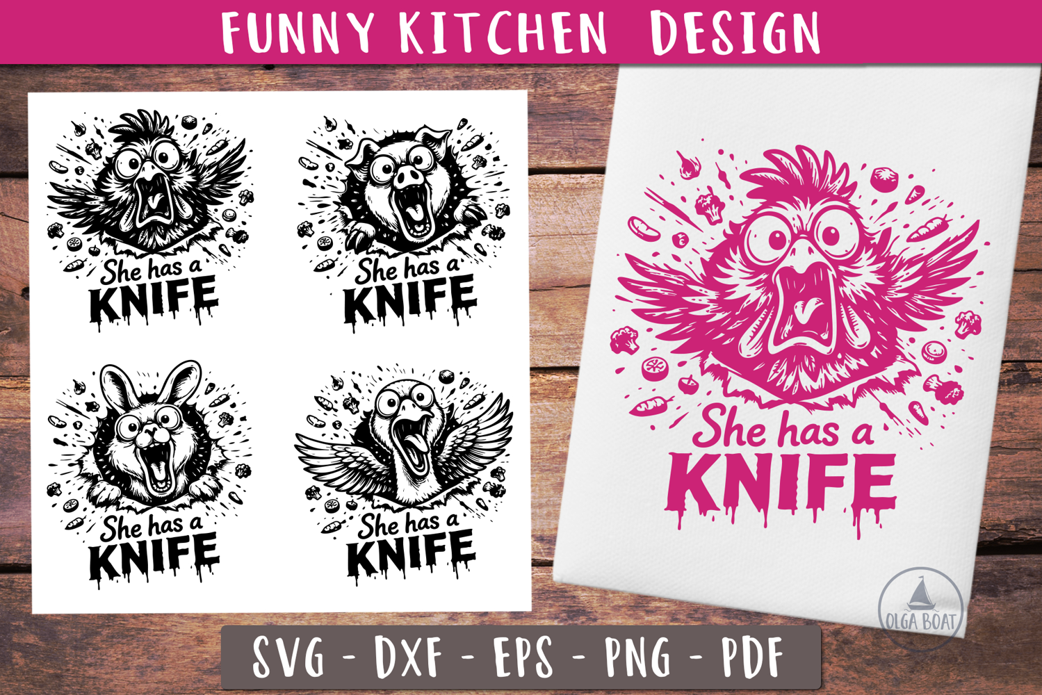 Farmhouse Kitchen Sign Holiday Quote She Has Knife Svg Funny Kitchen Towel Rustic Farmhouse Sarcastic Cooking Quote Crazy Hen Chicken Pig Bunny Svg Funny Animal Humor Food Kitchen Joke Cooking Kitchen Sayings Food Humor Chef Black And White Clipart Hilarious Kitchen Chaos Sign Culinary Fun Madness Screaming Illustration Wild Kitchen Cook Humor Design
