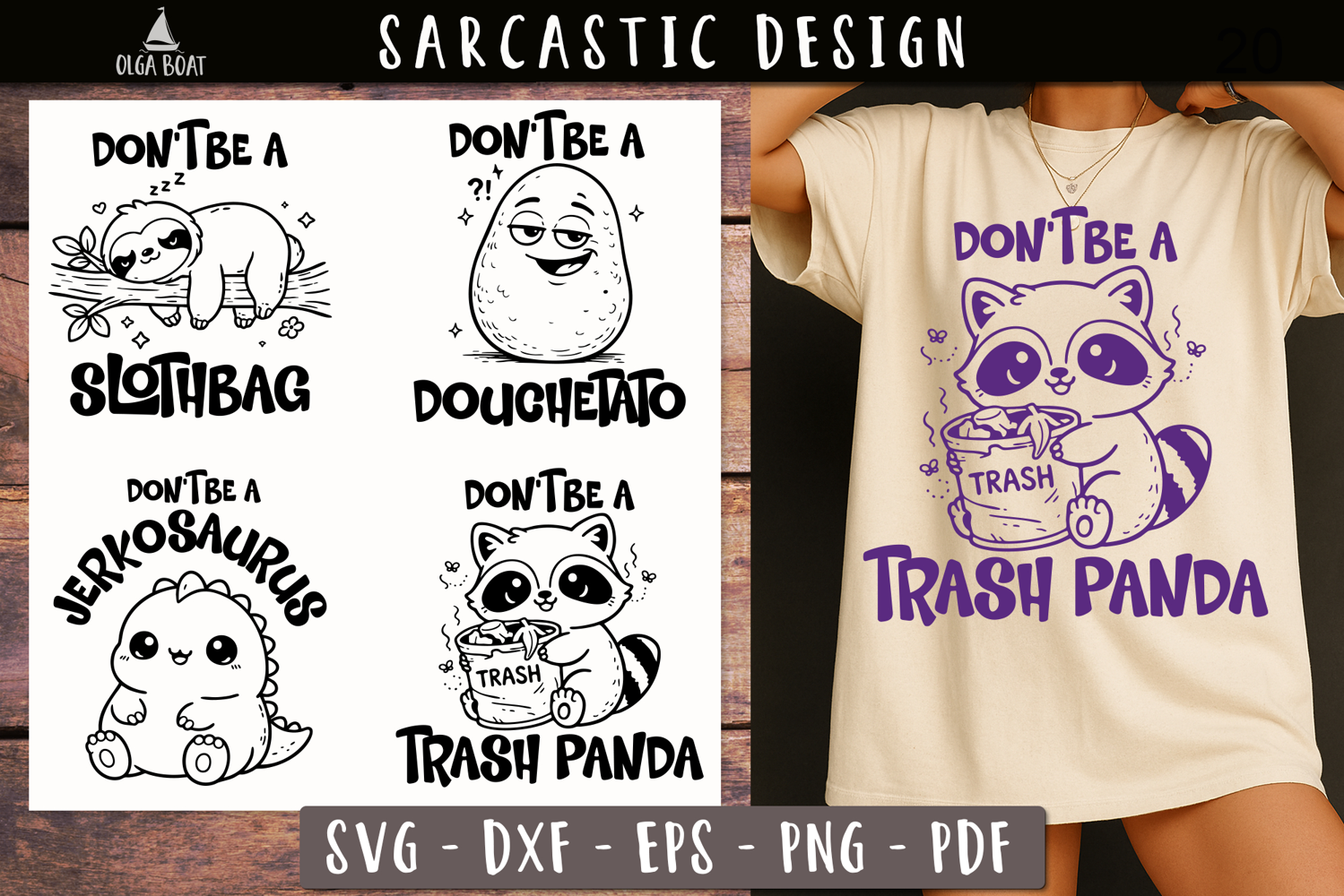 Black And White Clipart Funny Animal Print Funny Sarcastic Humor Quotes Svg Quirky Lineart Drawing Cute Potato Sloth Raccoon Trash Panda Dinosaur Snarky Apparel Print Design Sarcasm Funny Sayings Printable Adult Dont Be A Slothbag Douchetato Jerkosaurus Cute Insult Sarcastic Sweary Png Sassy Joke T Shirt Svg