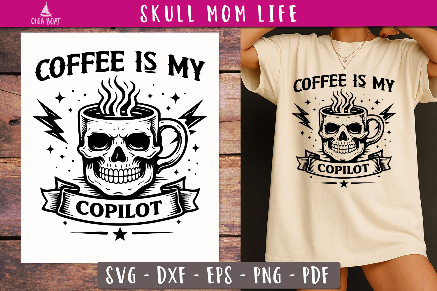 Coffee Skull Copilot SVG Funny coffee lover design