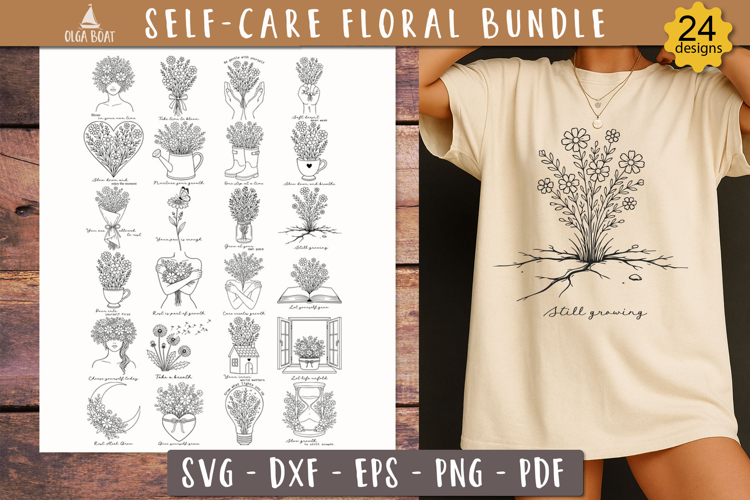 Self-Care Floral illustrations is perfect for cutting, prints, decor, cards, wall art, etc..
