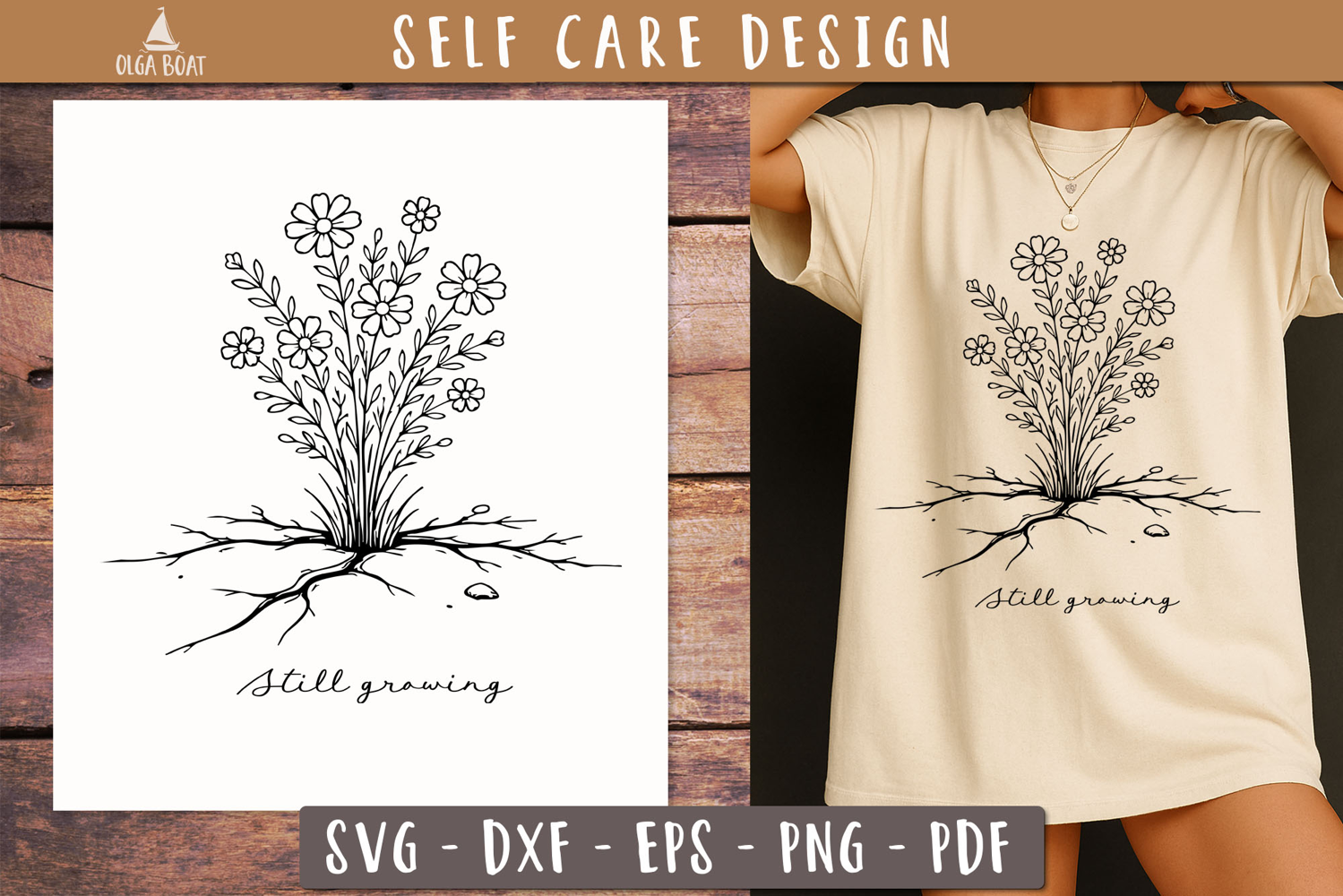 Still Growing Floral SVG PNG Self Care Quote