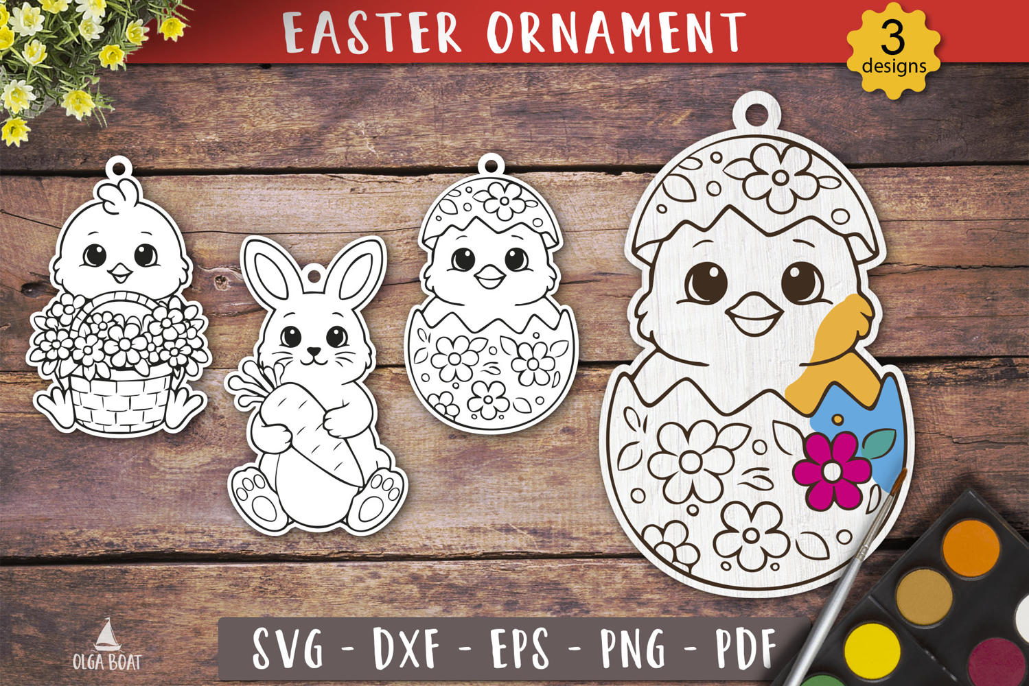Easter Bunny Chick Ornament SVG Painting Toy