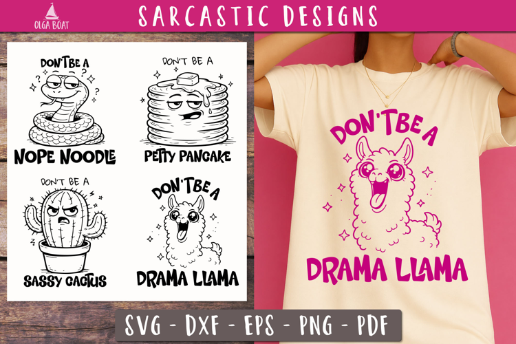 Black And White Clipart Funny Animal Print Sarcasm Funny Sayings Printable Cute Insult Sarcastic Sweary Png Sassy Joke T Shirt Svg Funny Sarcastic Humor Quotes Bundle Svg Quirky Silly Cartoon Lineart Drawing Dont Be A Drama Llama Pancake Cactus Snake Sarcastic Typography Nope Noodle Gift Adult Humor Quote Clipart