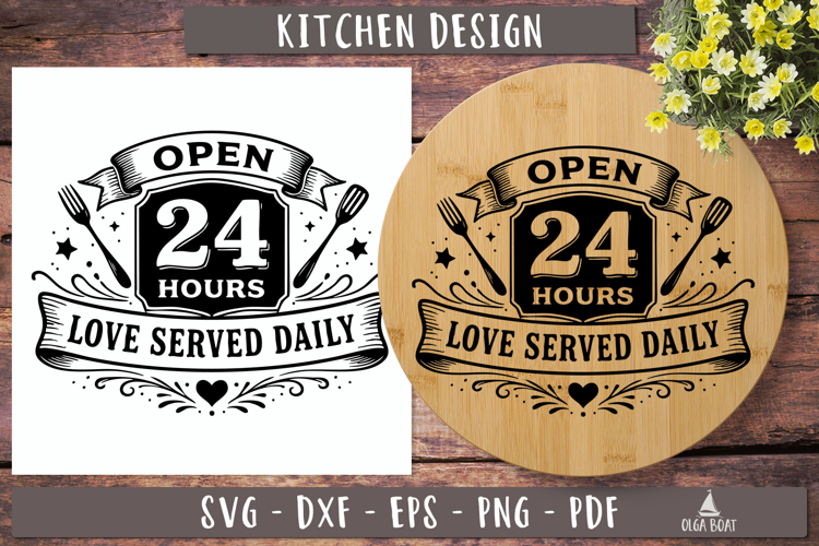 Open 24 Hours Love Served Daily SVG Kitchen sign