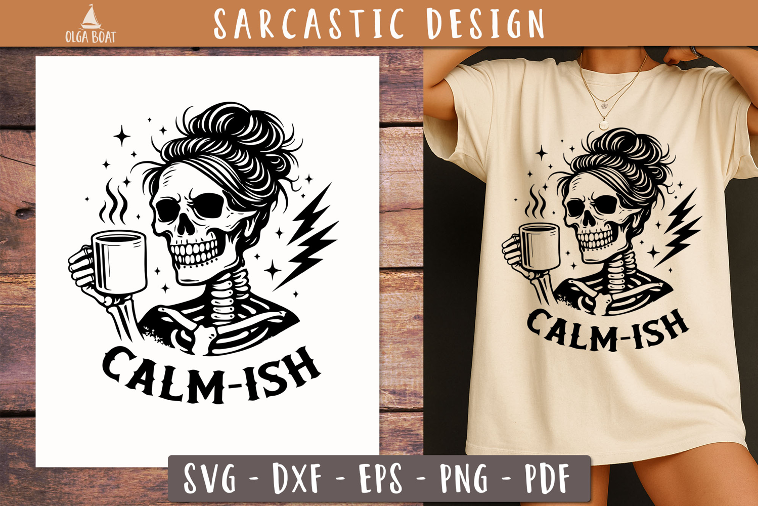 Calm-ish Skeleton Coffee SVG Sarcastic design
