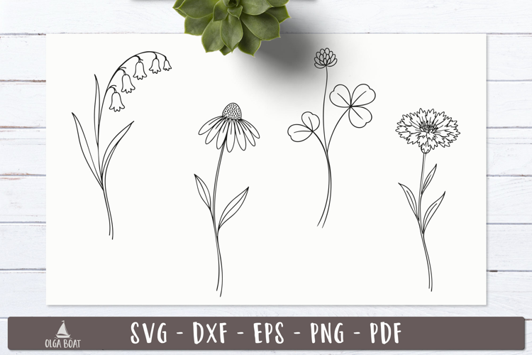 Floral Line art echinacea, clover, lily of the valley, cornflower bloom llustrations is perfect for cutting, prints, decor, cards, wall art, etc..