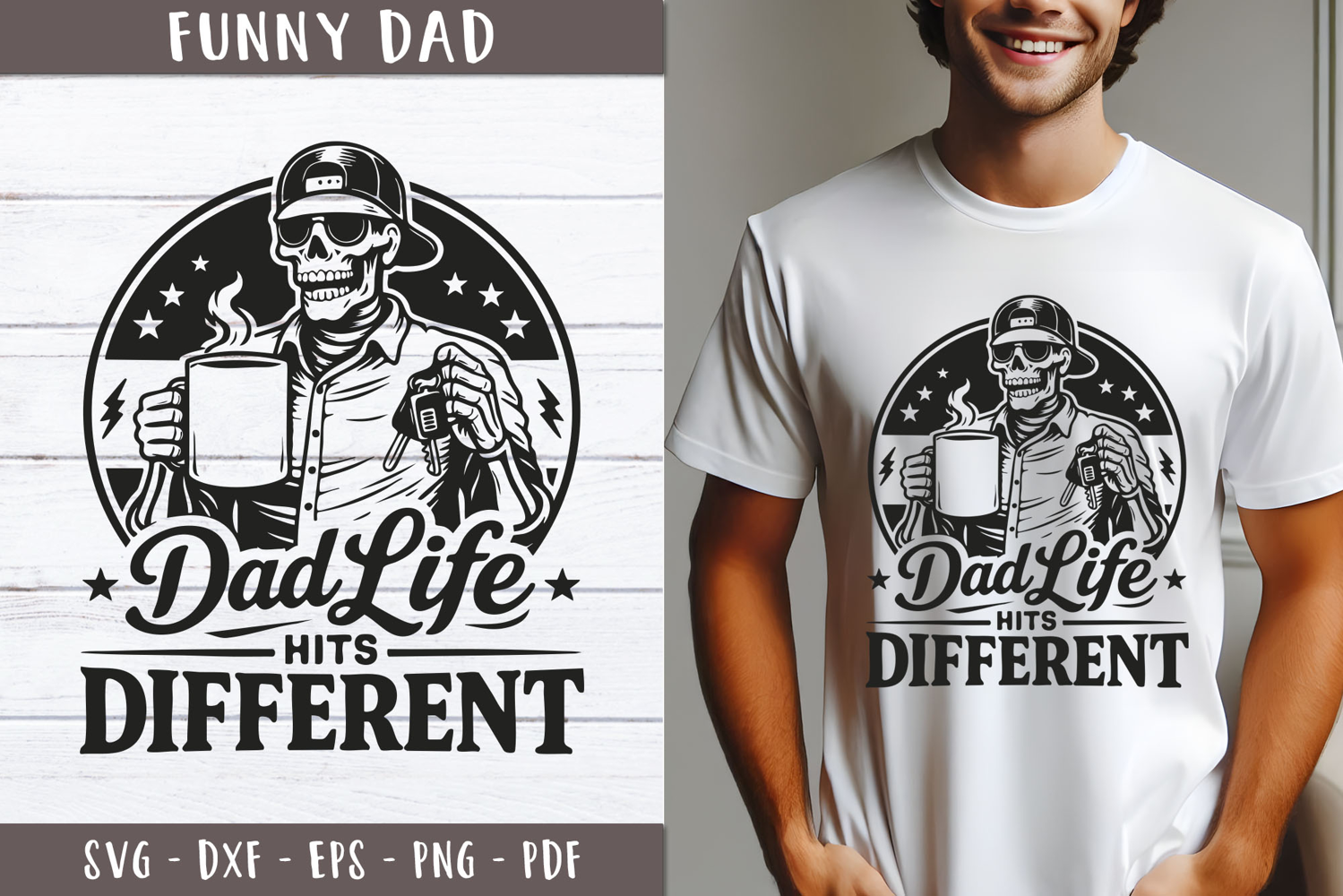 Black And White Clipart Sarcasm Funny Sayings Printable Funny Dad Handyman Svg Fatherhood Vintage Print Design Retro Daddy Father Skull Skeleton Illustration Humor Fathers Day Retro T Shirt Svg Fathers Day Vector Mens Gift Sarcastic Quotes Skeleton Dad Life Hits Different Coffee Lover Mug Keys