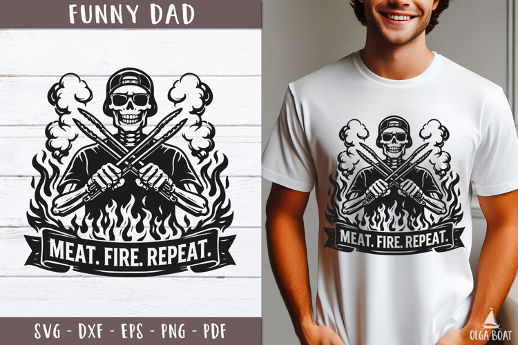 Meat Fire Repeat SVG Funny Dad design example image 1