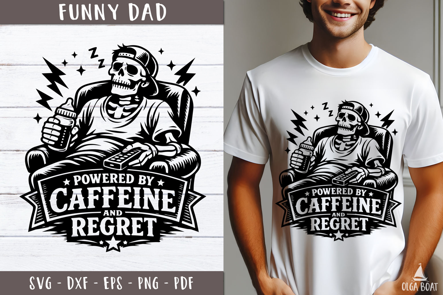 Black And White Clipart Sarcasm Funny Sayings Printable Fatherhood Vintage Print Design Retro Daddy Father Skull Skeleton Illustration Humor Fathers Day Retro T Shirt Svg Fathers Day Vector Mens Gift Sarcastic Quotes Skeleton Silhouette Graphic Handmade Powered By Caffeine Funny Dad Design Svg Png Coffee Tired Sleepy Couch Remote Bottle