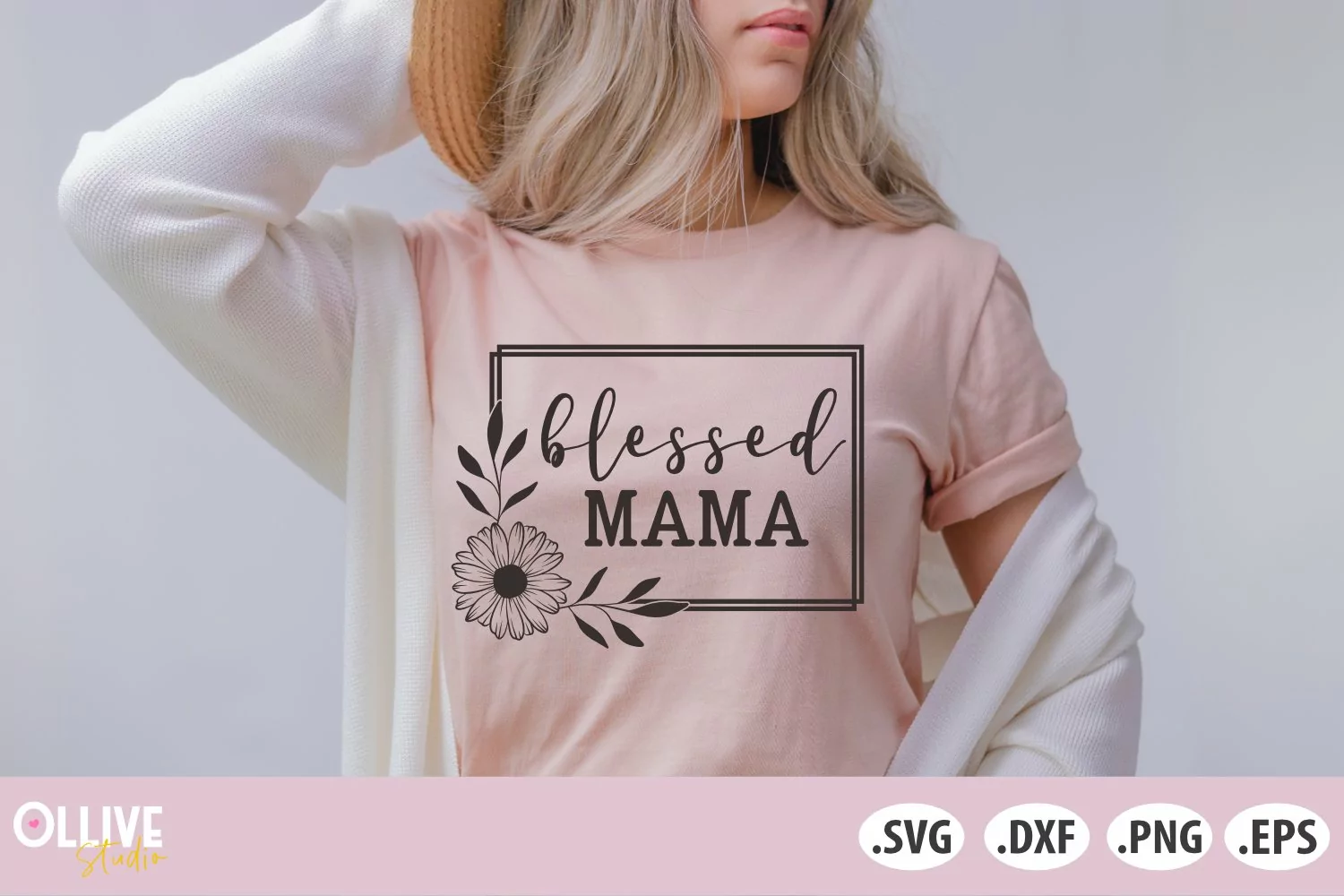 Blessed Mama SVG | Mama Floral SVG example image 1