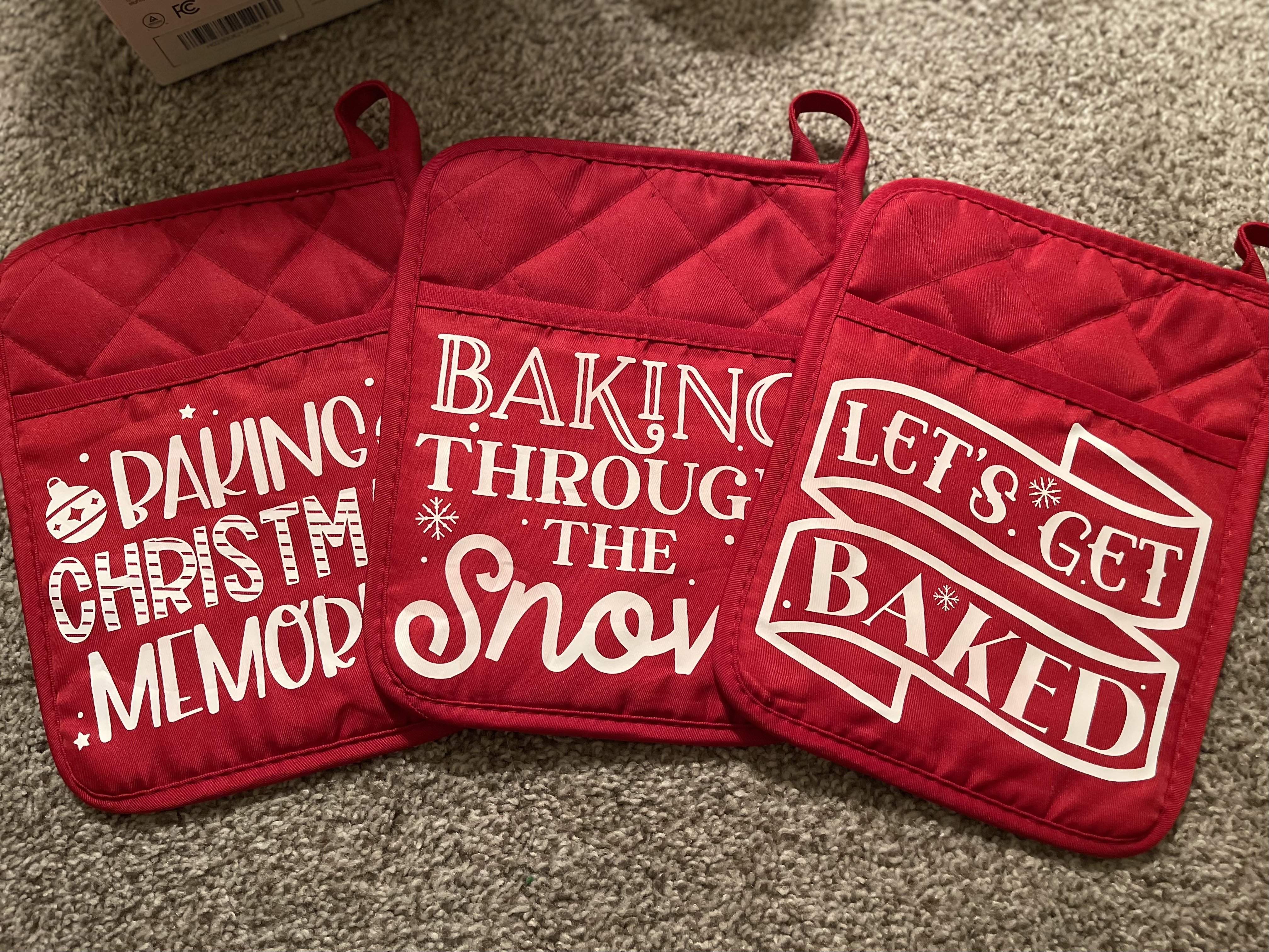 Designs added the perfect look to Dollar Tree potholders. So easy to weed and press. Will add a bag of cookie mix and a spatula for a great Christmas gift to neighbors and friends.