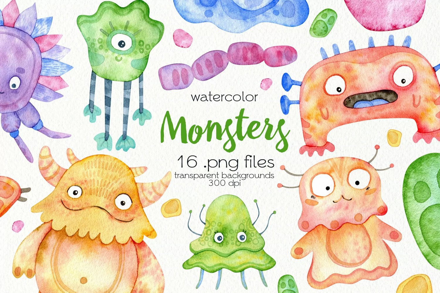 Similar Design Products to Watercolor Monsters Clipart - PNG Files