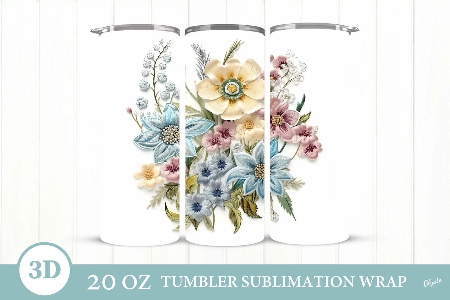 3D Embroidery Design. Tumbler Sublimation Wrap.