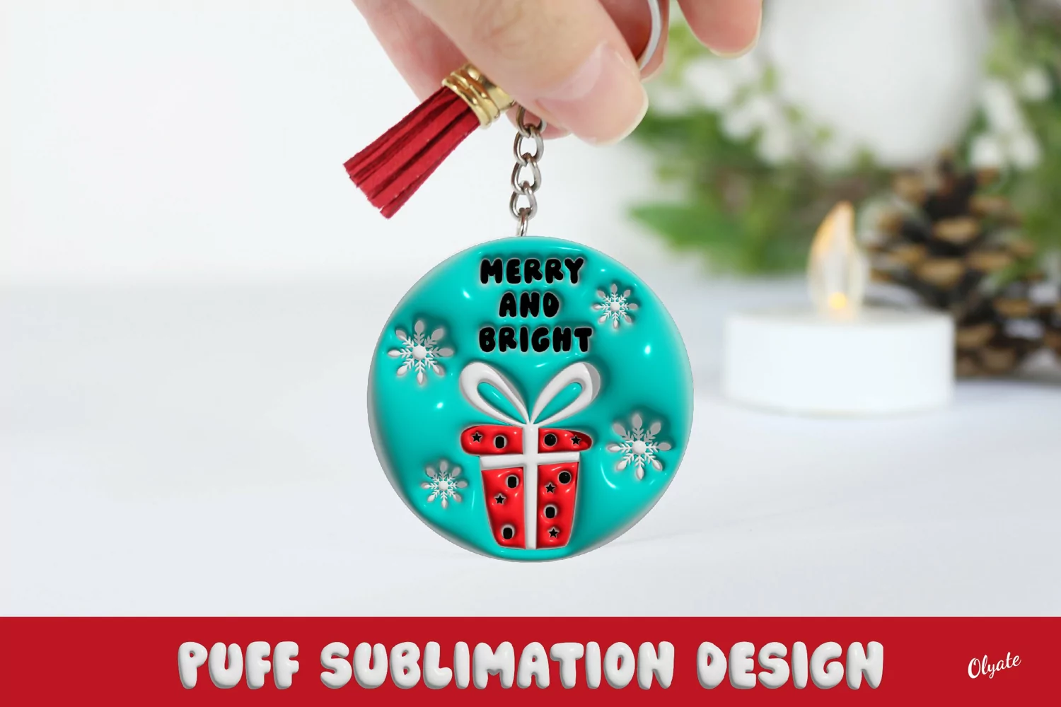 Christmas Keychain. 3D Puff. 3D Inflated. Merry And Bright example image 1