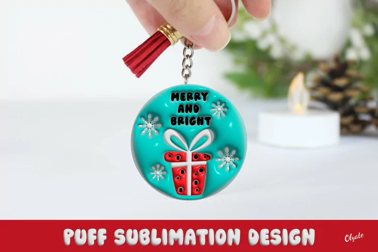 Christmas Sign Merry And Bright Keychain Christmas Ornament Sublimation Keychain Sublimation Round Keychain 3d Puff Christmas Keychain 3d Inflated Design 3d Puff Sublmation
