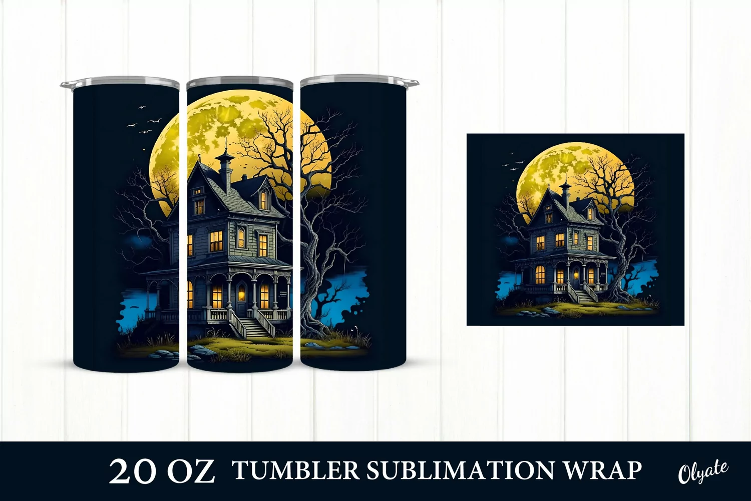 Haunted House Halloween Tumbler. 20 OZ Tumbler Wrap   example image 1