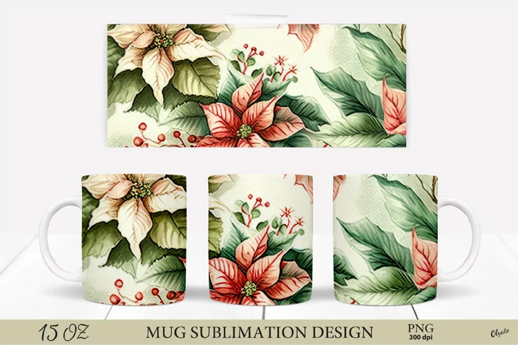 Watercolor Poinsettia Christmas Mug Mug Sublimation Design Christmas Mug Sublimation Mug Wrap Christmas Poinsettia Clipart Cup Wrap Christmas Mug Wrap Watercolor Poinsettia Mug Poinsettia Mug