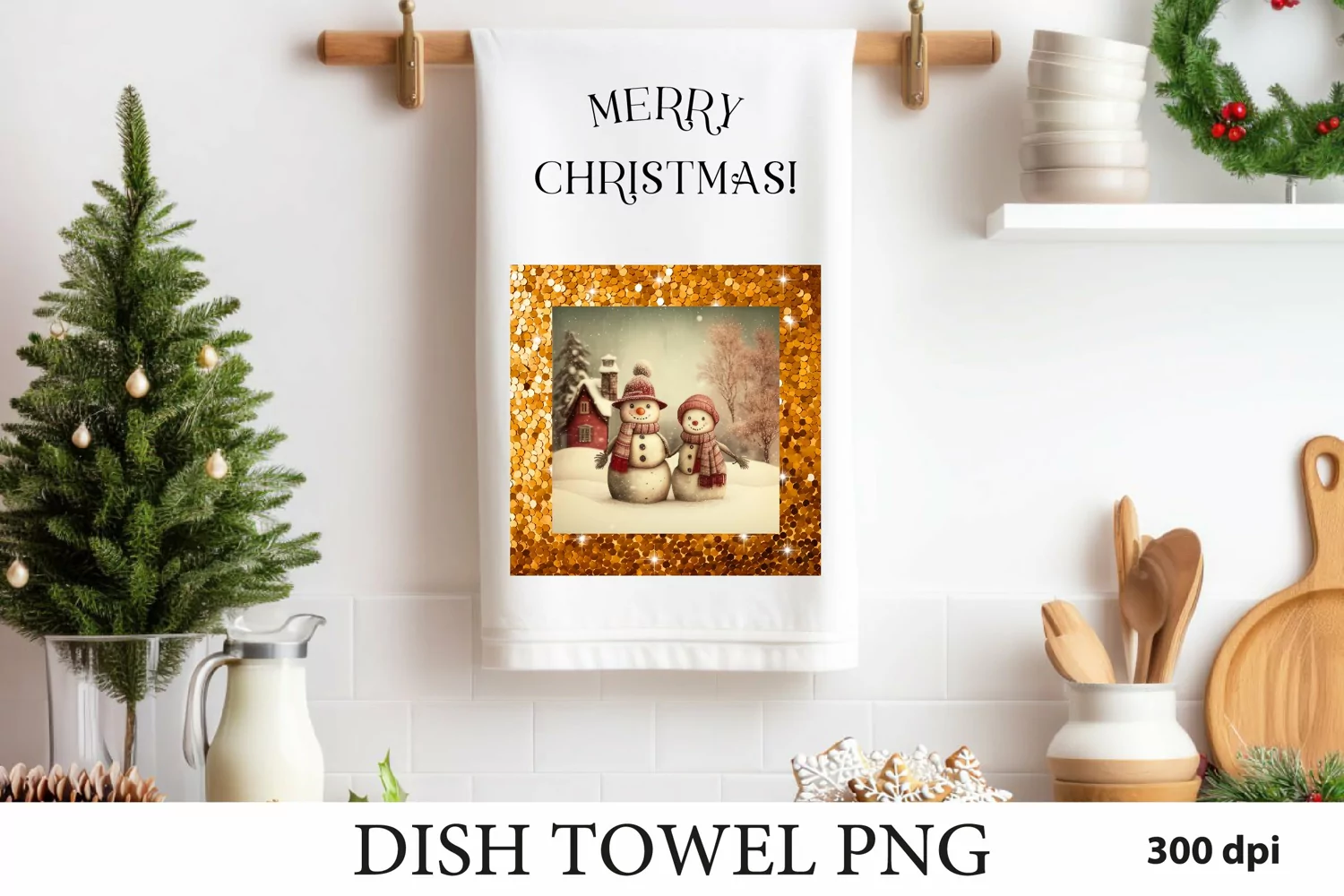 Kitchen Dish Towel PNG. Snowman Dish Towel Sublimation example image 1