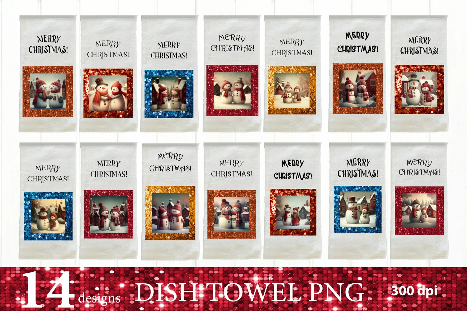 Similar Design Products to Snowman Kitchen Dish Towel Bundle PNG. Merry Christmas PNG