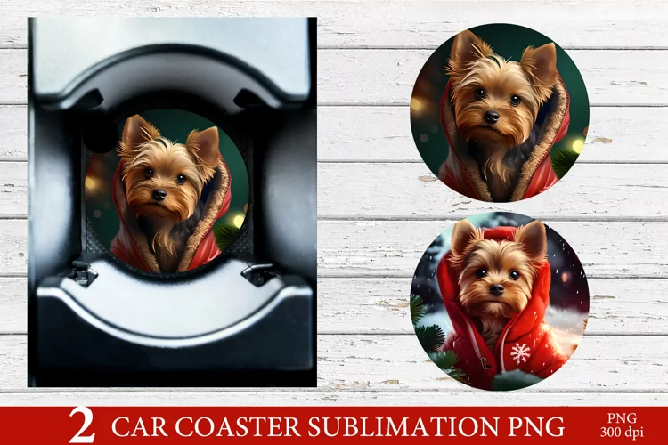 Similar Design Products to Yorkshire Terrier Car Coaster PNG. Christmas Dog Sublimation