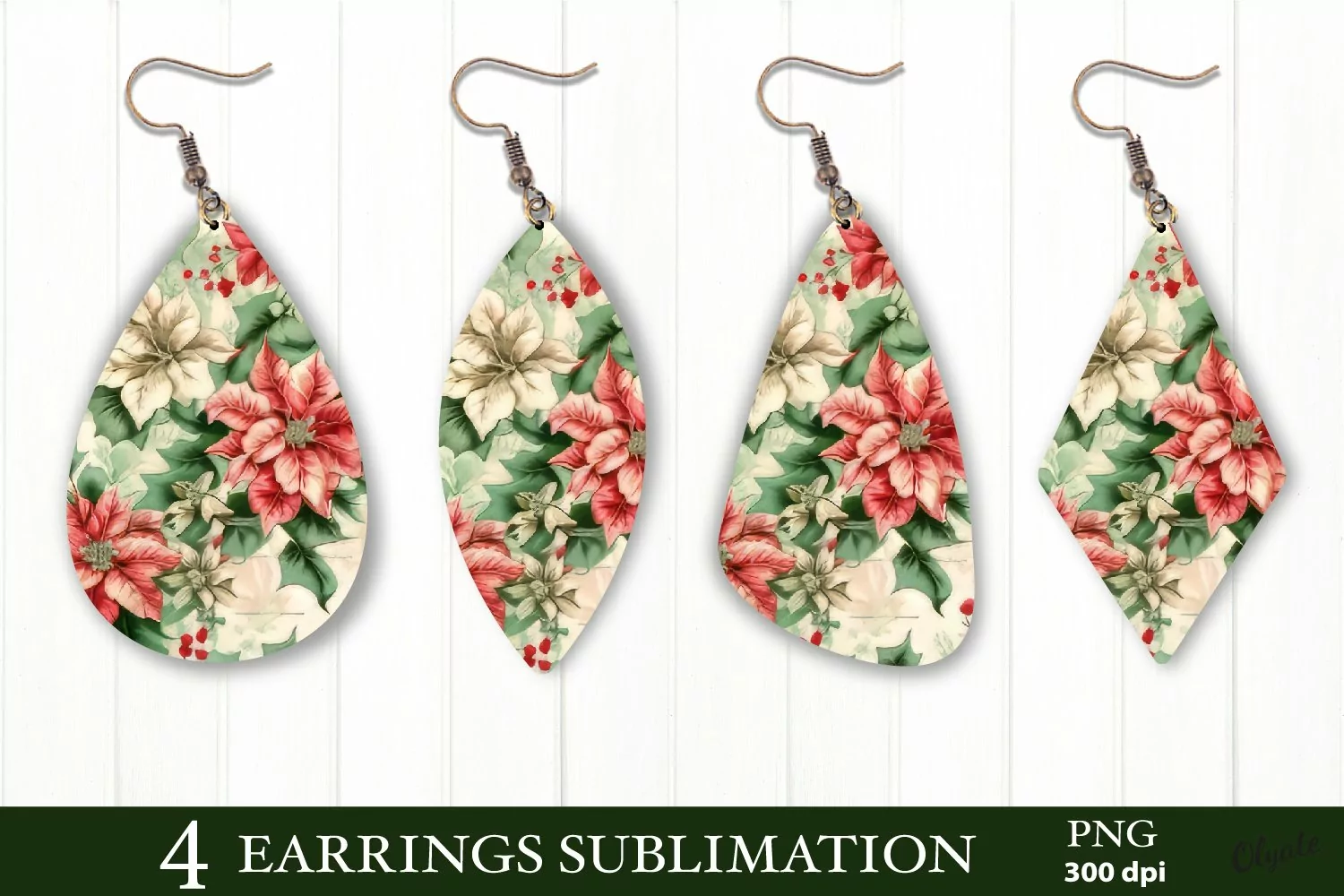 Poinsettia Earring Sublimation PNG. Christmas Earring PNG example image 1