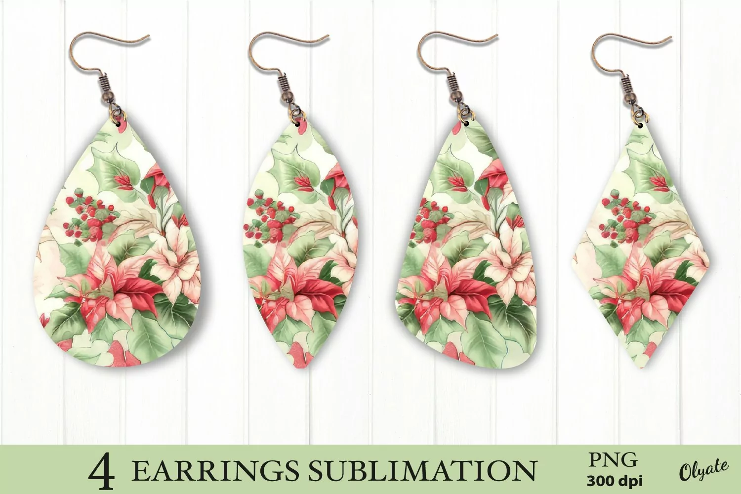 Christmas Poinsettia Earring Sublimation Design PNG. example image 1