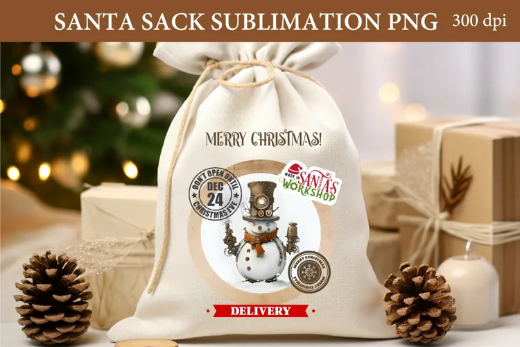 Similar Design Products to Steam Punk Snowman Sublimation PNG. Santa Sack PNG