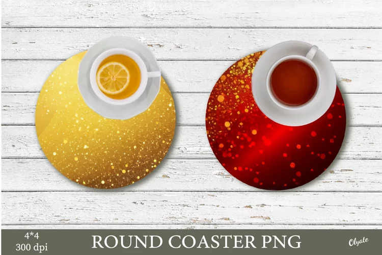 Similar Design Products to Gold and Red Sequins Coaster PNG. Round Coaster Sublimation