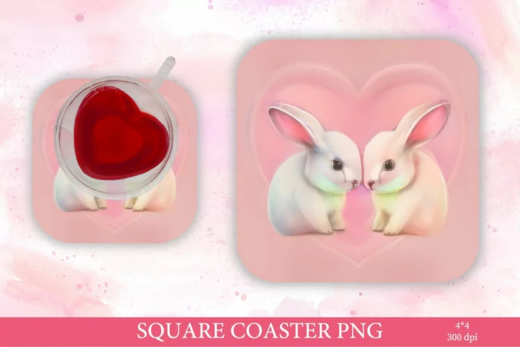 Watercolor Valentines Coaster Design Square Coaster Coaster Sublimation Valentines Day Coaster Valentines Day Square Coaster Bunny Square Coaster Pink Bunny Coaster Valentines Square Coaste Bunny Coaste