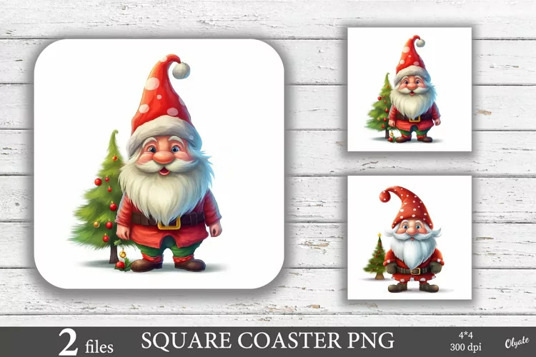 Christmas Gnome Sublimation PNG. Square Coaster Sublimation