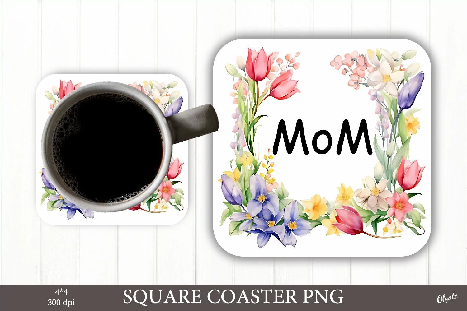 Mom Coaster Sublimation PNG. Square Coaster PNG example image 1