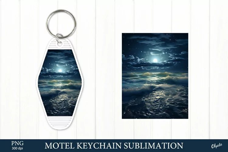 Motel Keychain Sublimation PNG. Night Sea Sublimation PNG example image 1