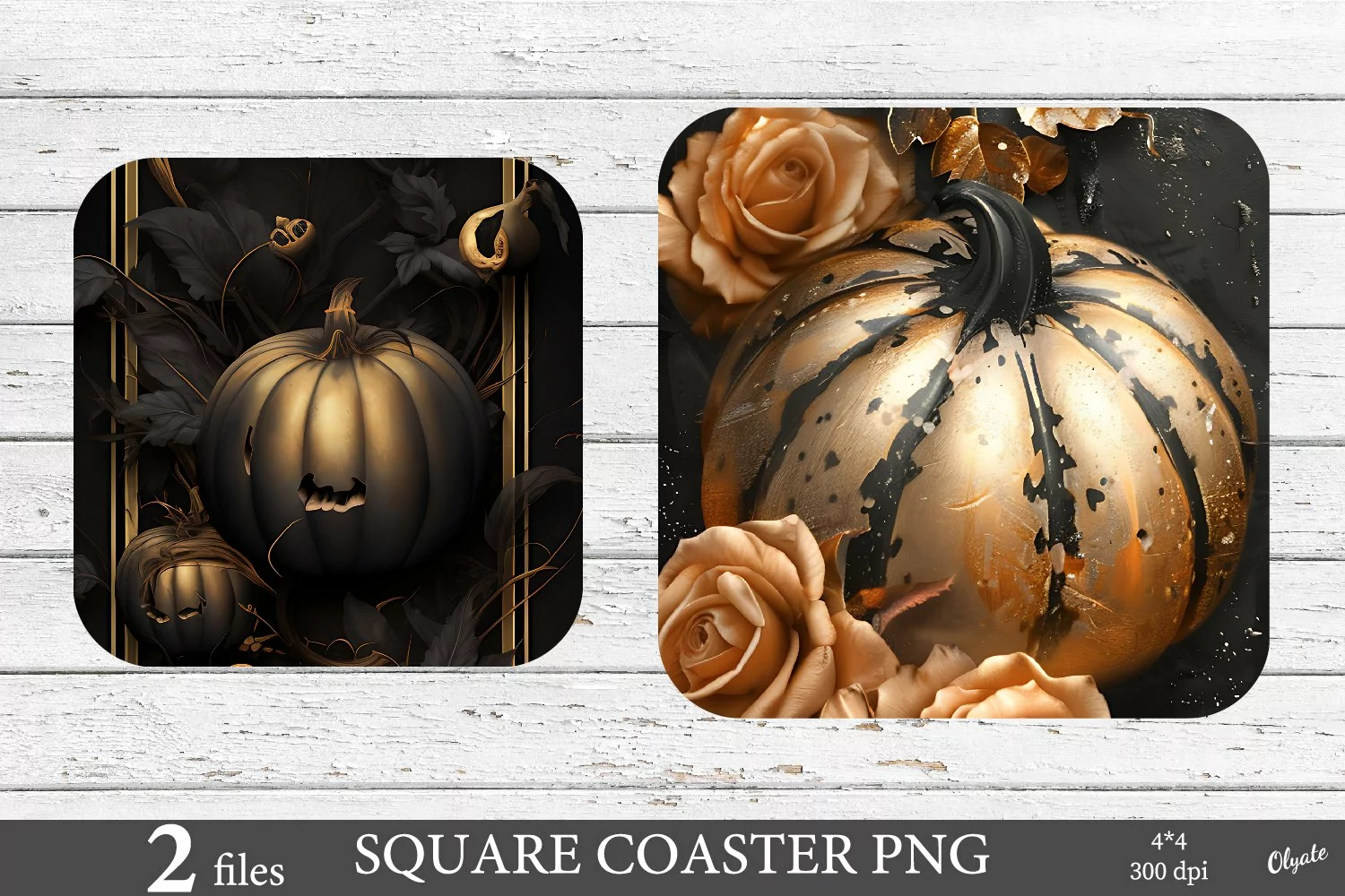 Gold Pumpkin Dark Halloween Gold Halloween Halloween Coaster Square Coaster Coaster Sublimation Coaster Png Mystical Pumpkin Mystic Halloween Poompkin Coaster