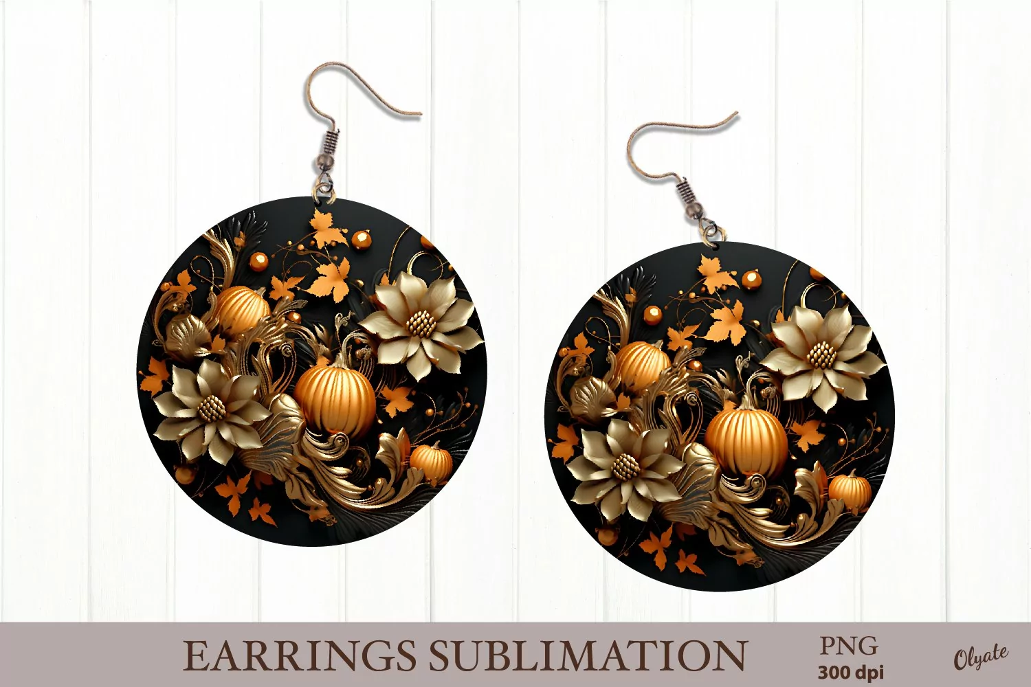 Golden Pumpkin Sublimation. Halloween Earring PNG example image 1