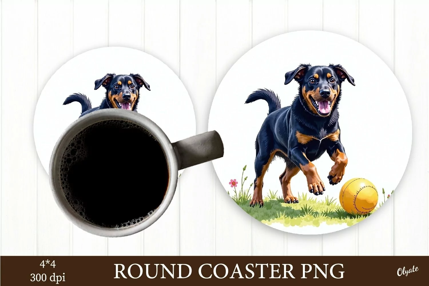 Dog Playing with Ball Coaster PNG. Coaster PNG