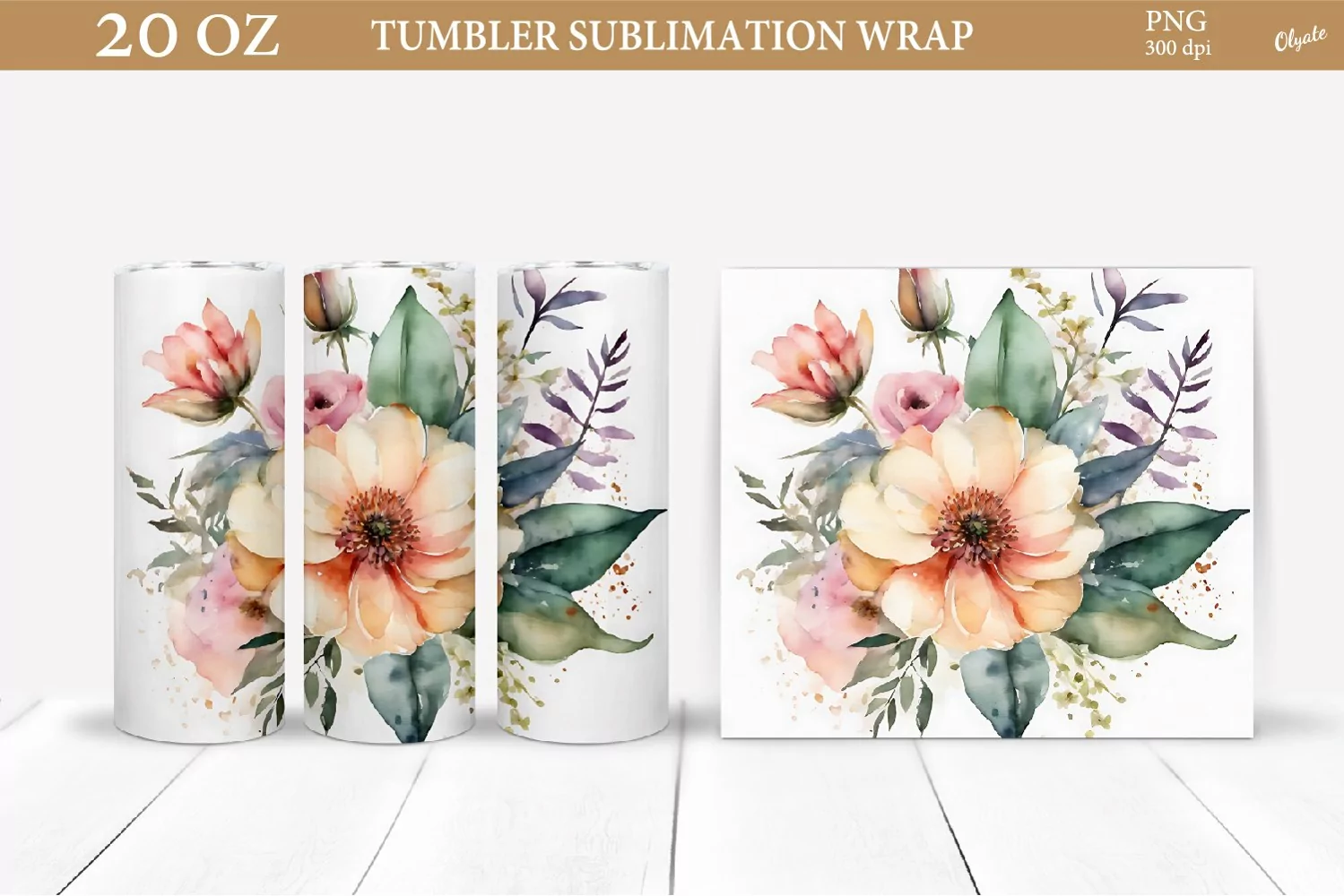 Watercolor Floral Tumbler Wrap. 20 OZ Tumbler example image 1