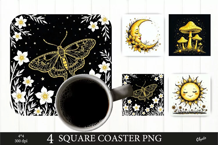 Similar Design Products to Black Magical Coaster PNG. Black and Gold Coaster PNG