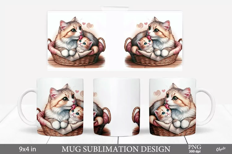 Mother Day Mug PNG. Mom and Baby Animal PNG. Mama Cat