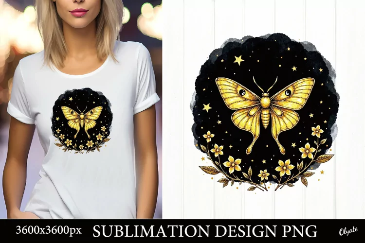 Tshirt T Shirt Design Black Magic Gold Moth Tshirt Sublimation Lunar Moth Magic Sublimation Moth Sublimation Magic Moth Night Sublimation