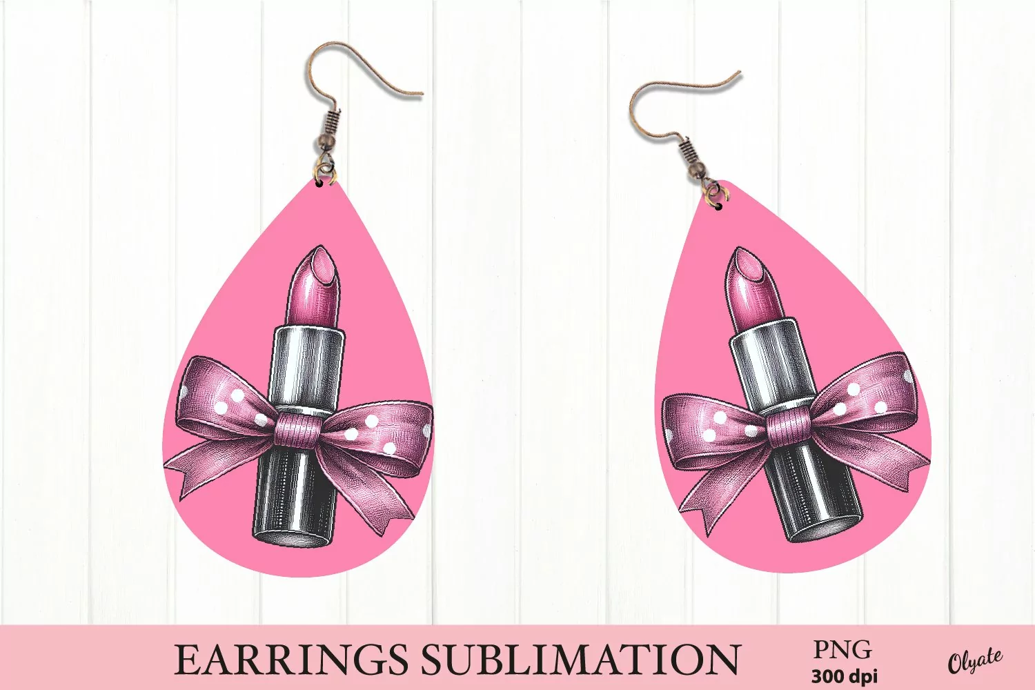 Valentine Day Teardrop Earring Valentine Earring Earring Sublimation Valentines Day Earring St Patrick Earring Lipstick Coquette Coquette Bow Lipstick Pink Lipstick Earring Pink Lipstick With Bow