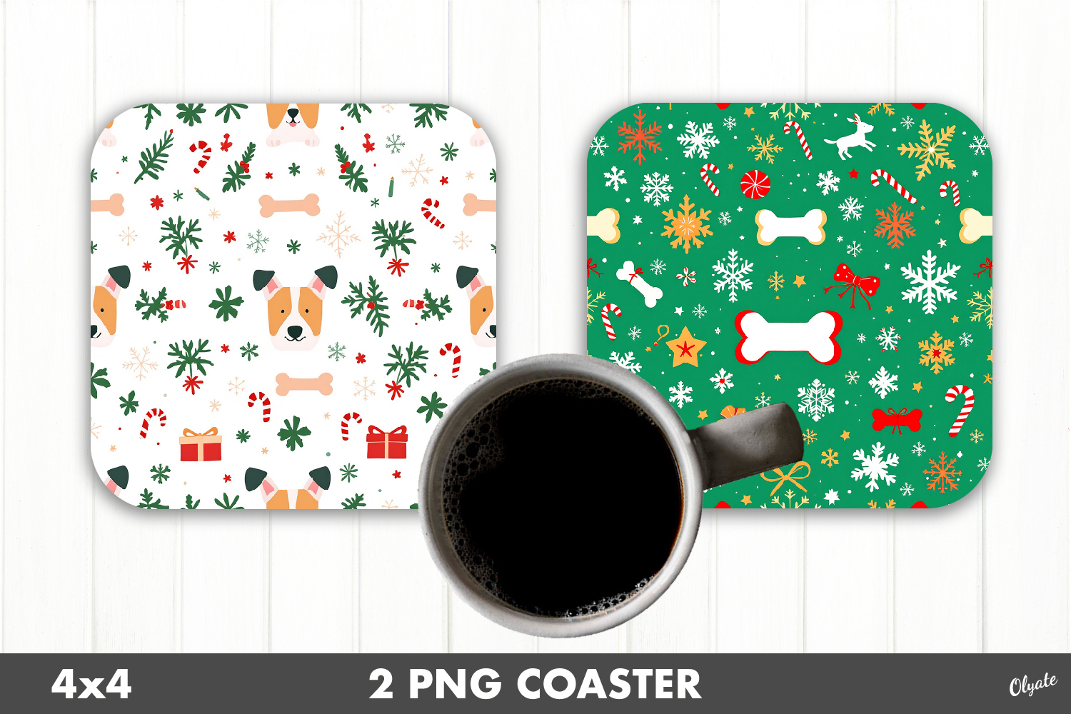 Christmas Dog Coaster PNG. Square Coaster PNG example image 1