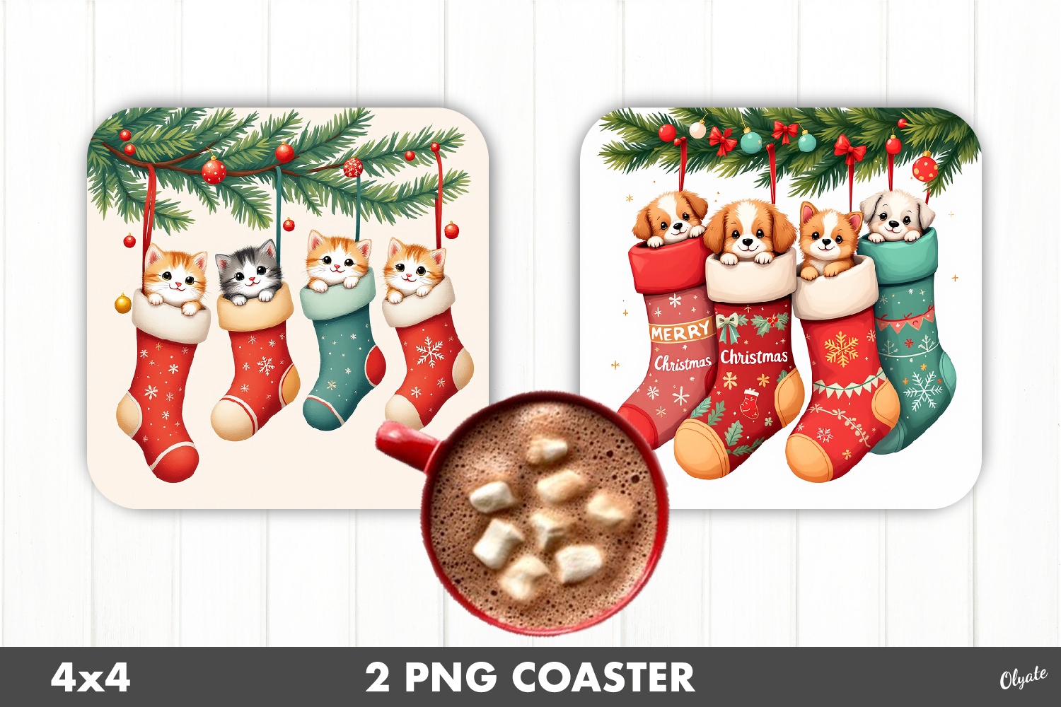 Christmas Animal Christmas Socks Christmas Dog Christmas Cat Christmas Kitty Christmas Coaster Christmas Square Coaster Socks Dog Puppies In Socks Christmas Puppi