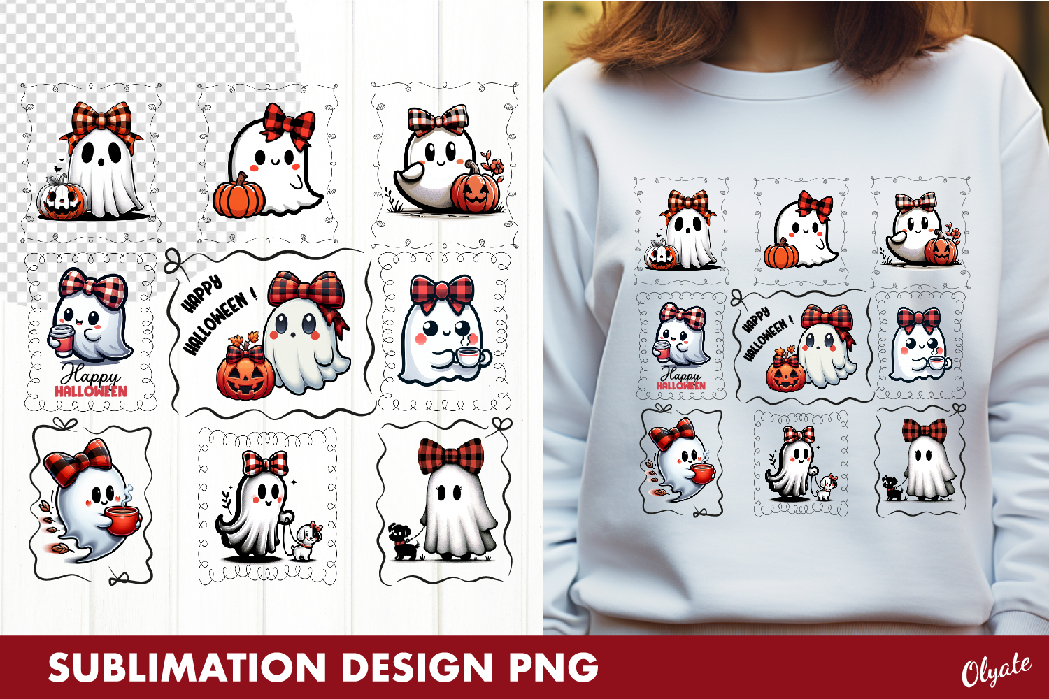 Cute Ghosts Sublimation PNG. Halloween Tshirt Design example image 1