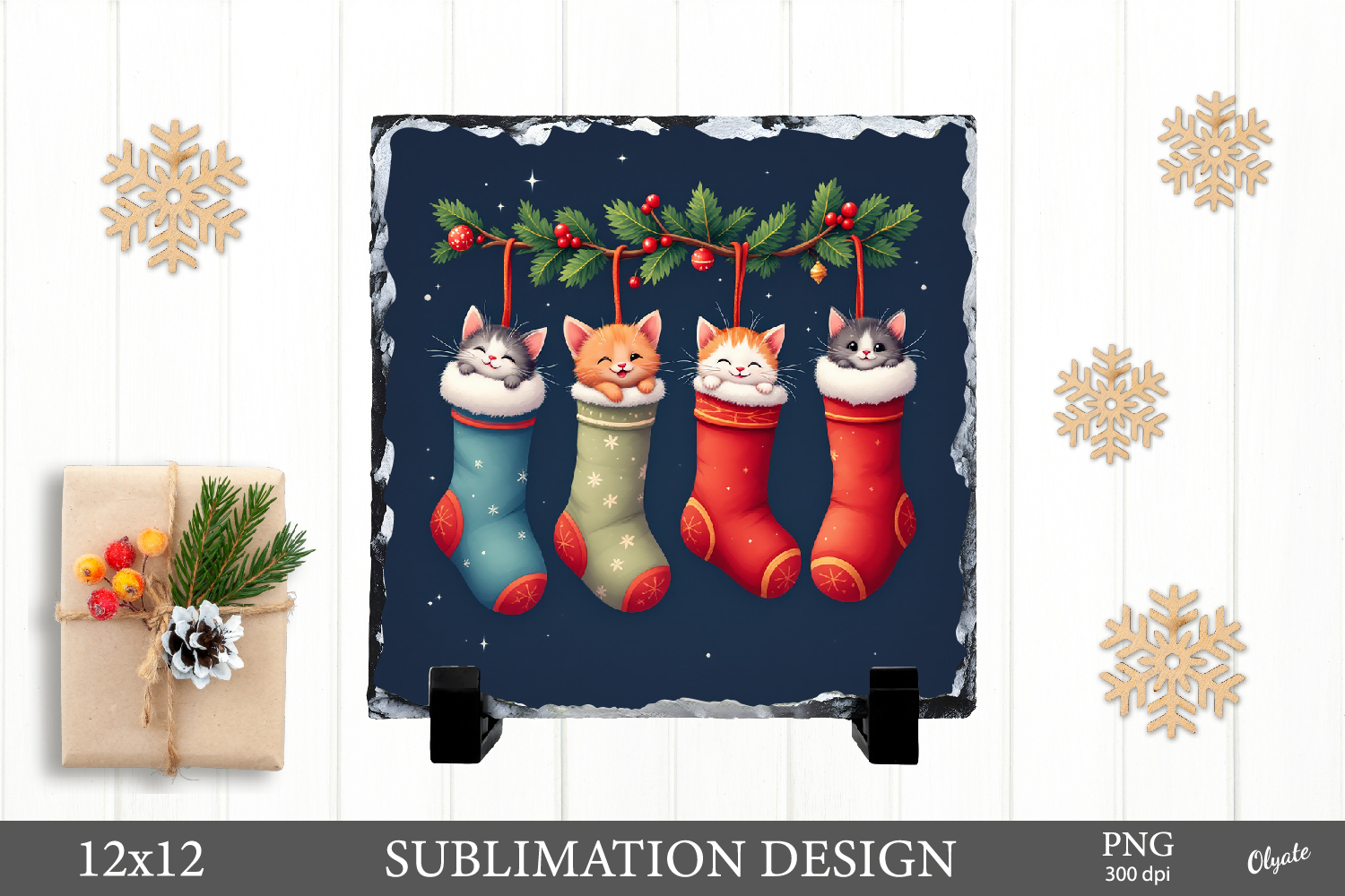 Christmas Slate Sublimation, Kittens in Socks Sublimation example image 1