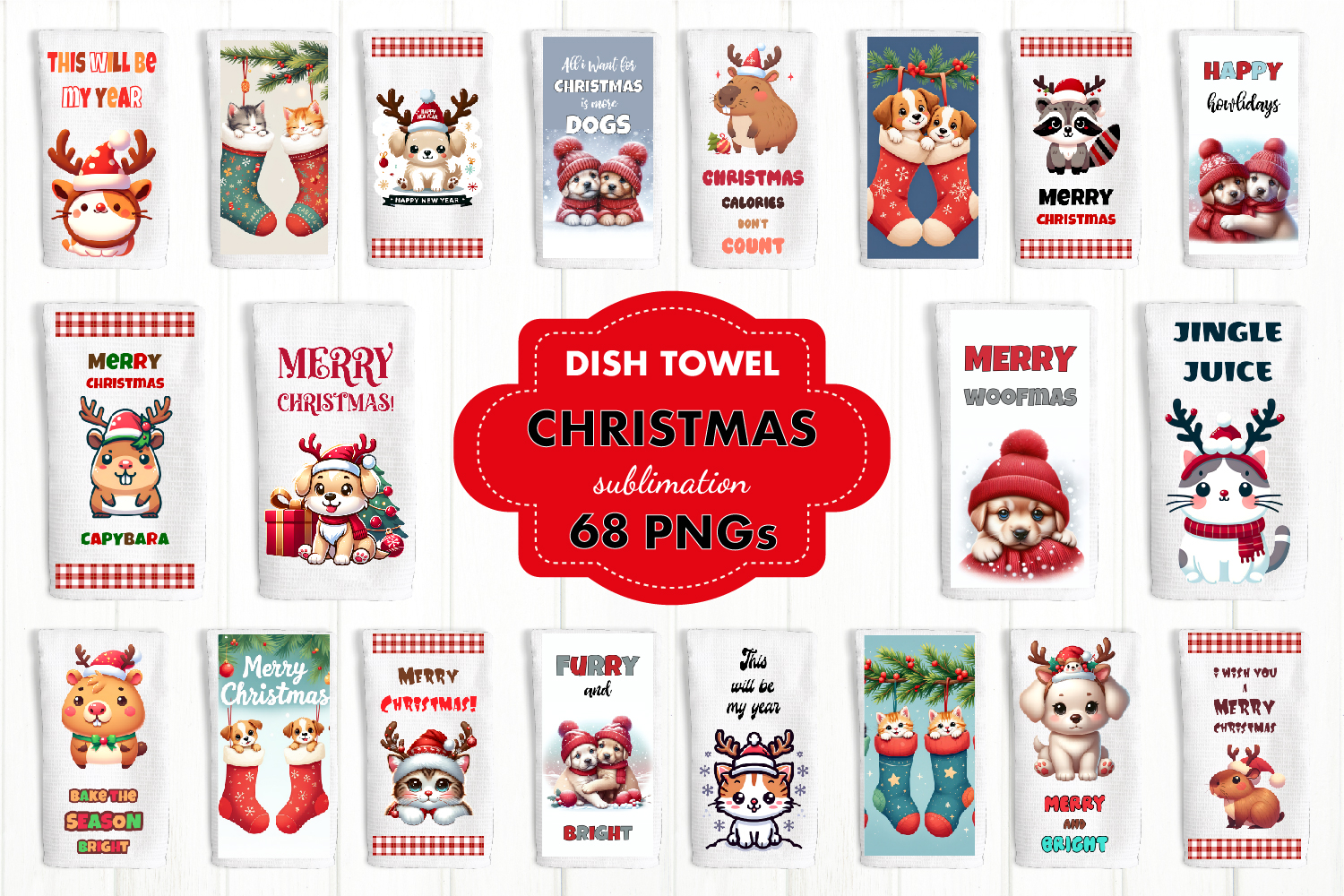 Christmas Dish Towel Bundle PNG. Cute Animal Christmas example image 1