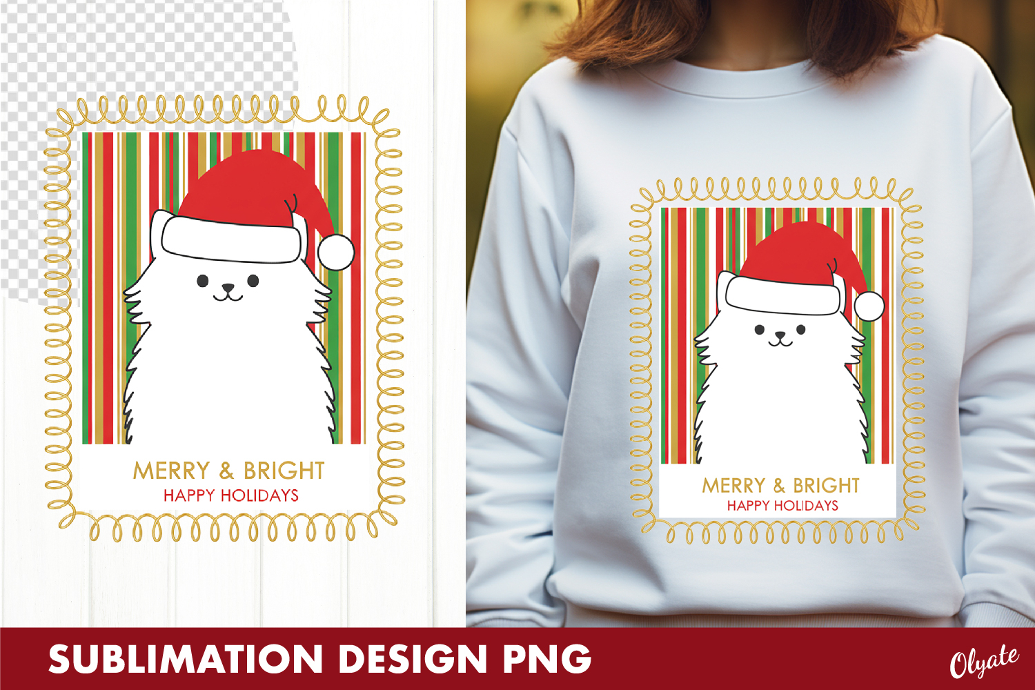 Christmas Cat Sublimation PNG, Tshirt Postage Stamp PNG