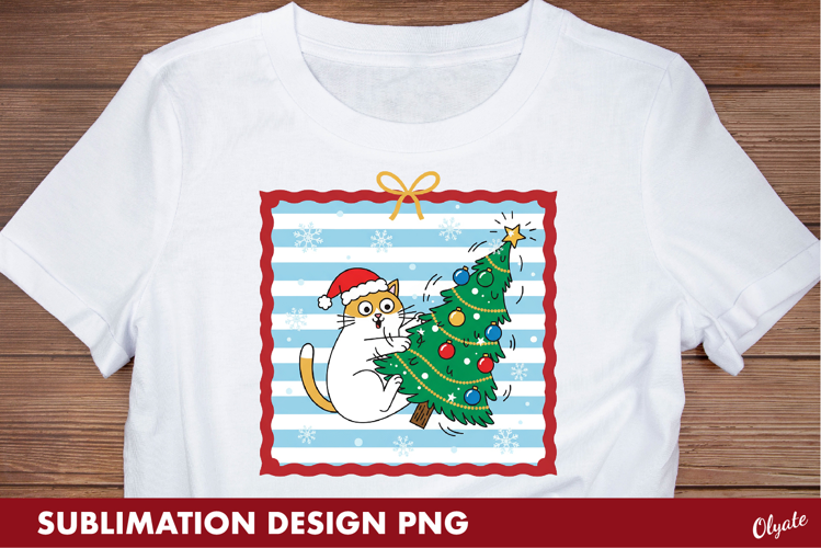 Christmas Cat Sublimation PNG, Tshirt Postage Stamp example image 1