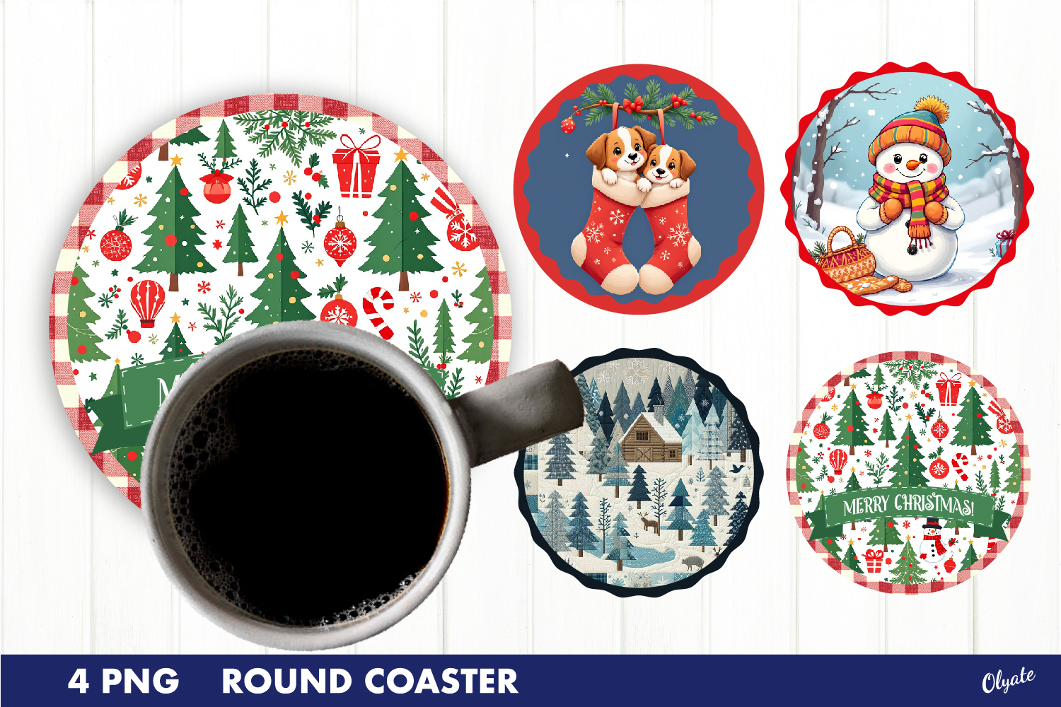 Christmas Coaster PNG. Round Coaster Sublimation